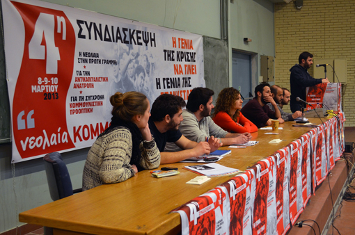4ης Συνδιάσκεψης είναι το «Η γενιά της κρίσης, να γίνει γενιά της επανάστασης» που αποτυπώνει και την κεντρική ιδέα των θέσεων και την κατεύθυνση της πολιτικής πρότασης της οργάνωσης. Το κεντρικό σύνθημα καταλήγει «η νεολαία στην πρώτη γραμμή: για την αντικαπιταλιστική ανατροπή, για τη σύγχρονη κομμουνιστική προοπτική».